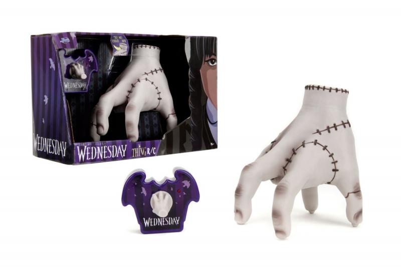 Animovaná lezoucí ruka - Věc na dálkové ovládání z filmu Wednesday. 2 kanály (pohyb vpřed, vzad, vlevo a vpravo). Frekvence 2,4 GHz. Dobíjení prostřednictvím USB. Velikost 18 cm.
